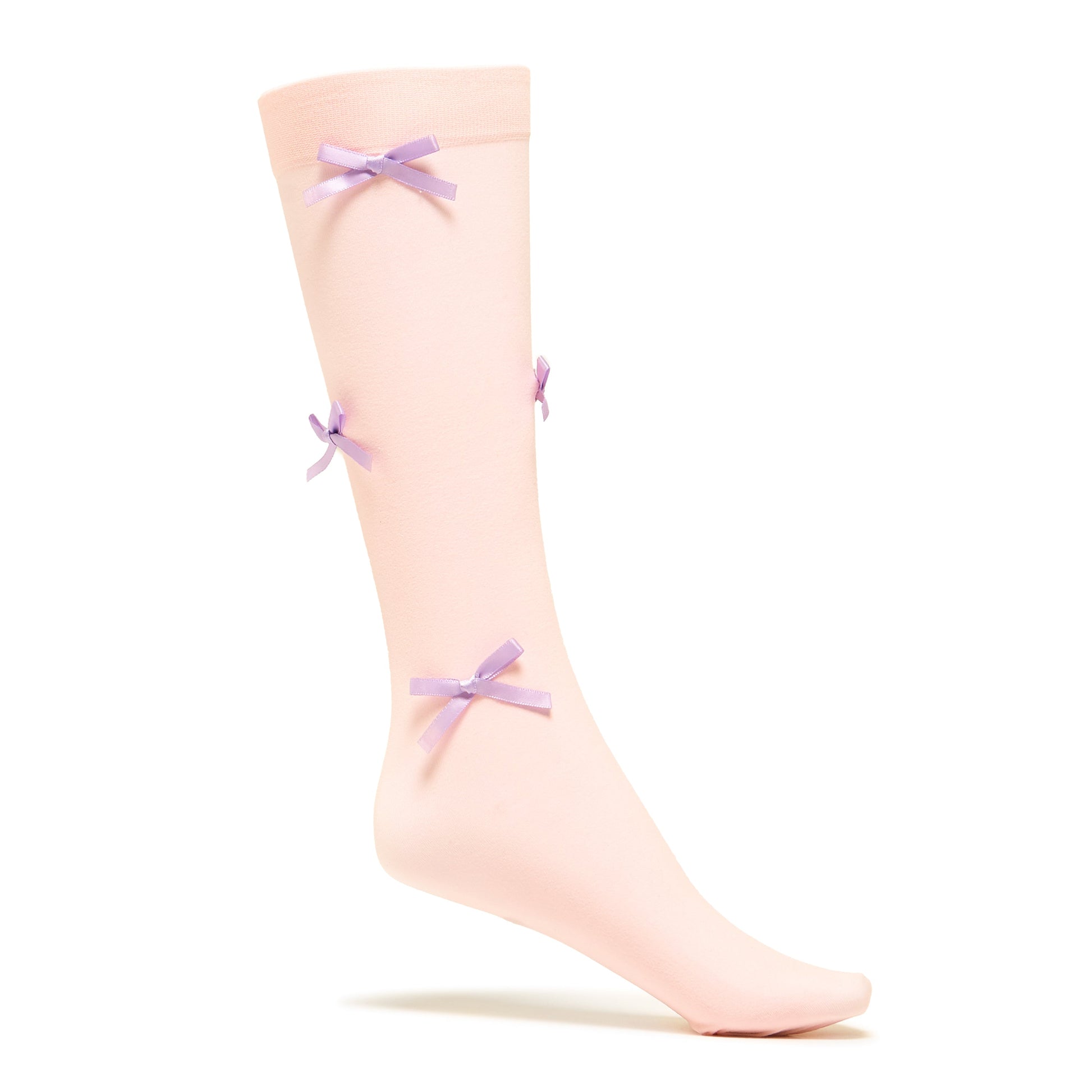 Fairycore found its perfect match. These pastel pink socks feature lilac satin bows, giving off major nymph vibes. Wear with Mary Janes, stompy boots or platforms – these are the kind of dreamy Details your outfit’s been waiting for.