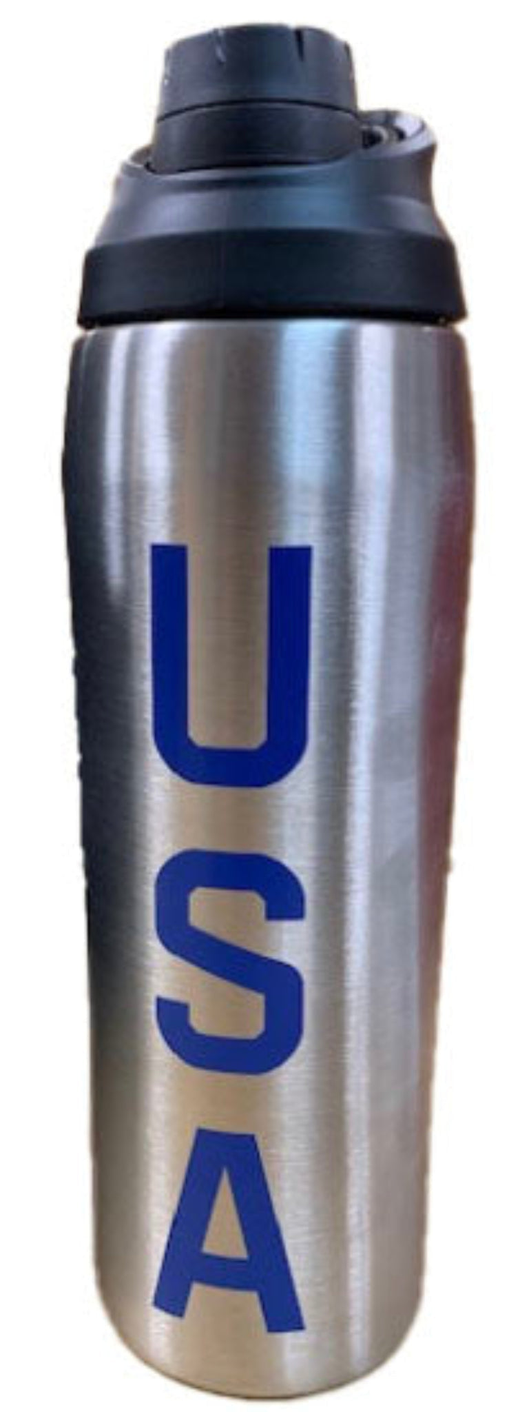 The Nike USA Steel Water Bottle has an easy twist-off cap that makes hydrating easy. It's vacuum-insulated to keep your drink cold, and the leak-resistant lid provides a tight seal.