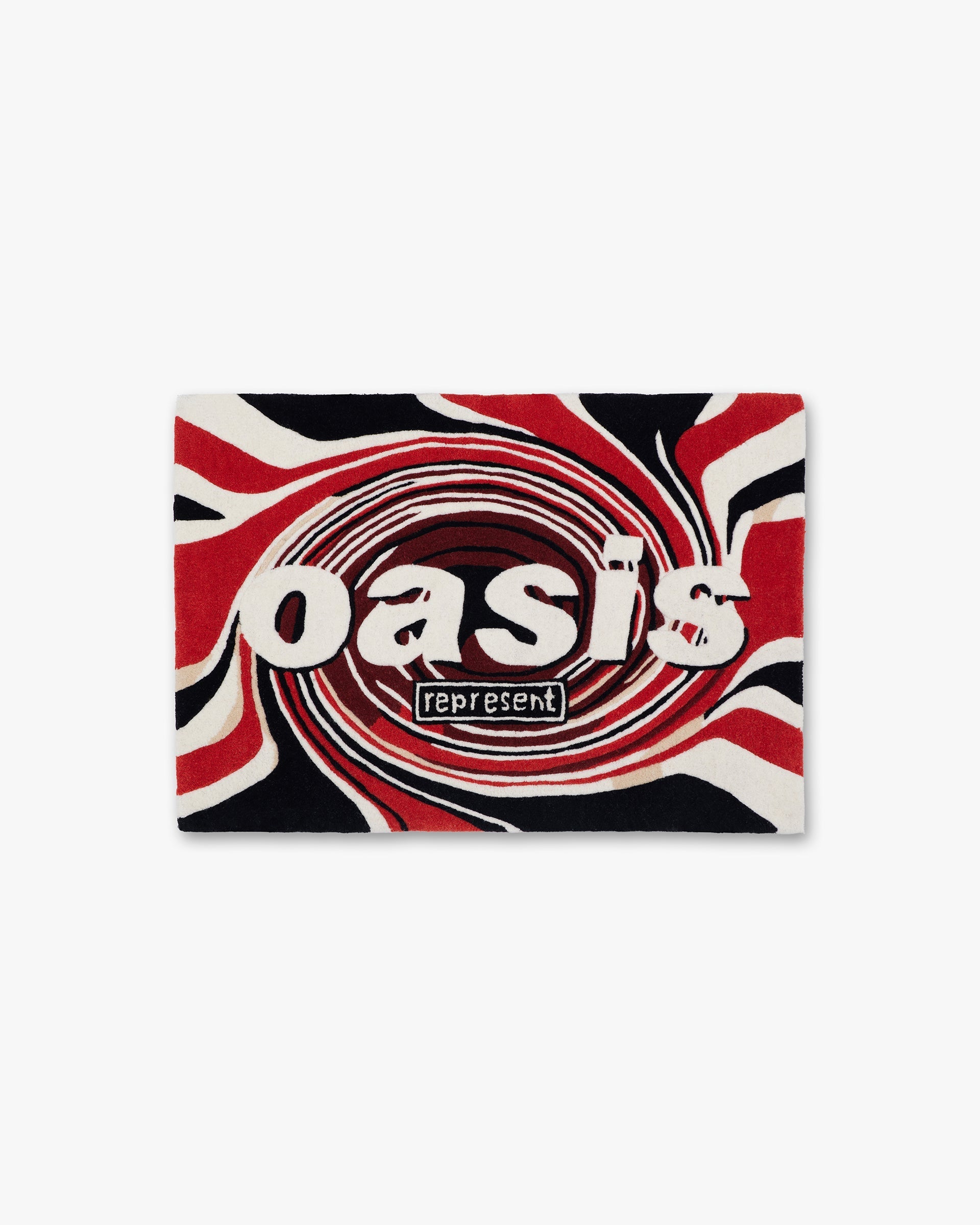 Introducing the Represent x Oasis Rug. A handmade rug with the iconic Union Jack Swirl, designed by Tony French in 1993 when the band were relatively unknown. The swirl design was taken from the Union Jack that was painted on Oasis’s Boardwalk rehearsal room, with the swirl said to represent the vortex created by the band’s mind bending music. The swirl includes an addition of Represent branding, stylised in Oasis’s beloved box logo. We included the rug in the collaborated collection to pay homage to the Oasis’s original roots.
